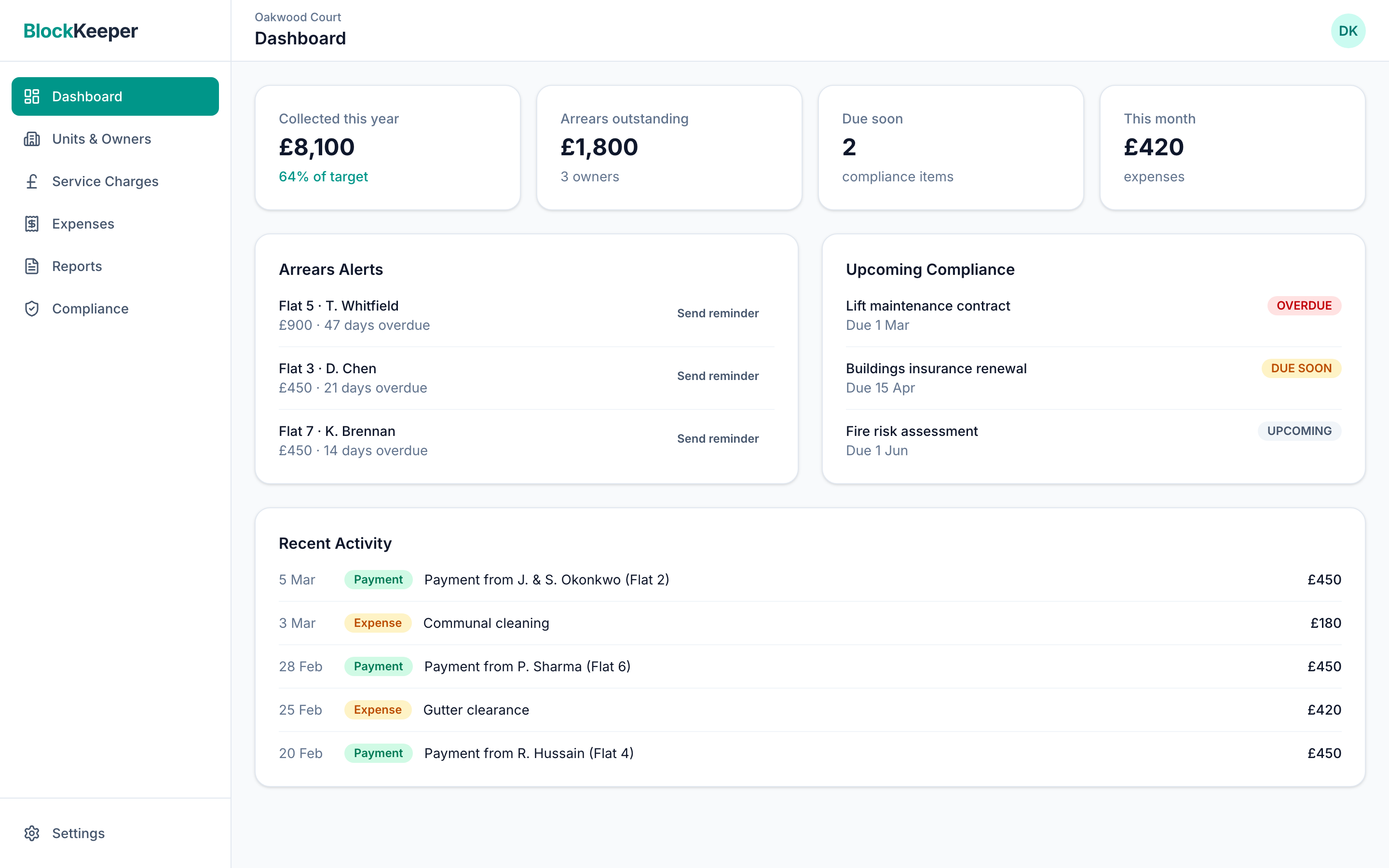 BlockKeeper is built for that day-to-day reality — especially for small UK blocks of flats with around 5 to 25 flats.